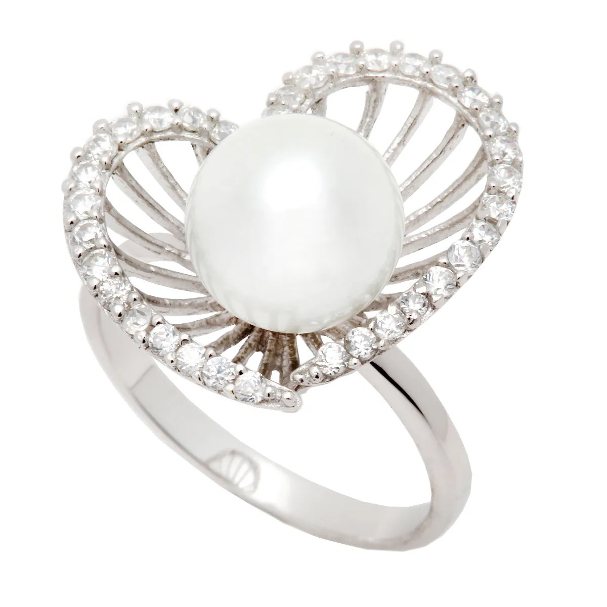 Γυναικείο Δαχτυλίδι από ασήμι 925 επιπλατινωμένο, γνήσιο μαργαριτάρι και ζιργκόν. Χωρίς νικέλιο.