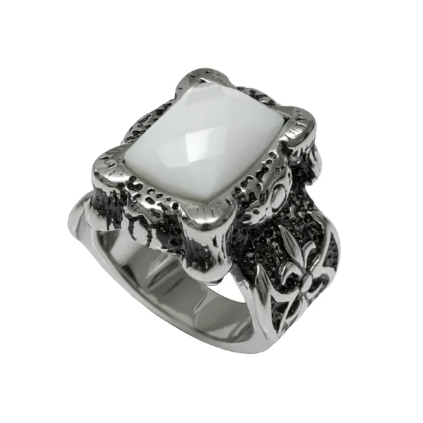 γυναικείο δαχτυλίδι από ανοξείδωτο ατσάλι με άσπρο όνυχα & οξειδωμένες λεπτομέρειες
