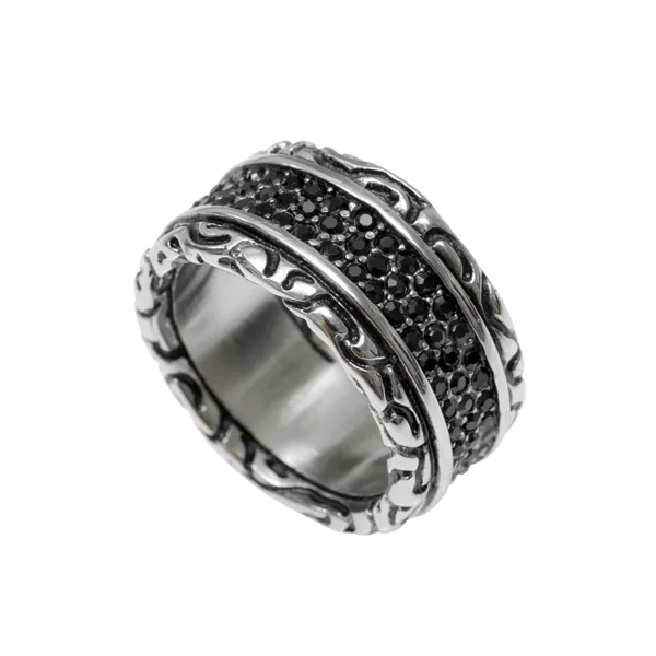γυναικείο δαχτυλίδι από ανοξείδωτο ατσάλι με οξειδωμένες λεπτομέρειες και μαύρα ζιργκόν