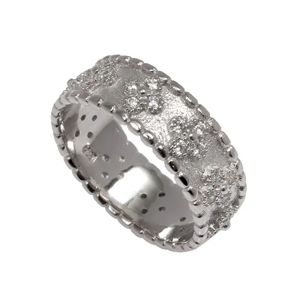 925 ασημένιο γυναικείο δαχτυλίδι, σφυρήλατο, επιπλατινωμένο, χωρίς νικέλιο με ζιργκόν.