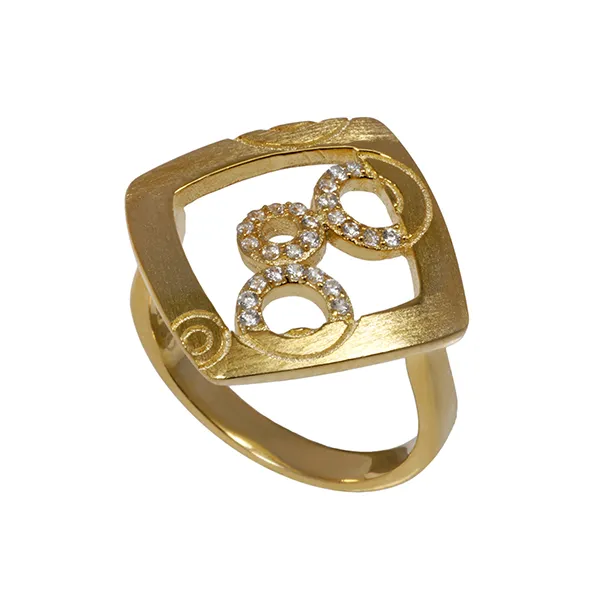 925 ασημένιο γυναικείο δαχτυλίδι, ματ, επιχρυσωμένο, με ζιργκόν.