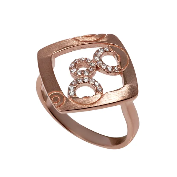 925 ασημένιο γυναικείο δαχτυλίδι, ματ, με ροζ χρυσό και ζιργκόν.
