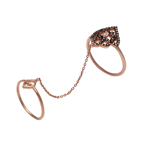 925 ασημένιο διπλο γυναικείο δαχτυλίδι, με ροζ χρυσό και ζιργκόν.