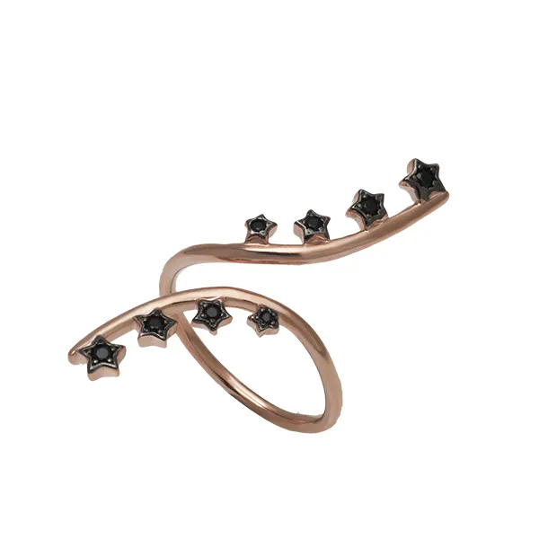 925 ασημένιο γυναικείο δαχτυλίδι, με ροζ χρυσό και μαυρα ζιργκόν
