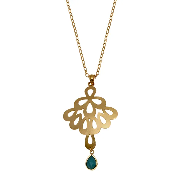Γυναικείο κολιέ από ανοξείδωτο επιχρυσωμένο ατσάλι και αμαζονίτη
