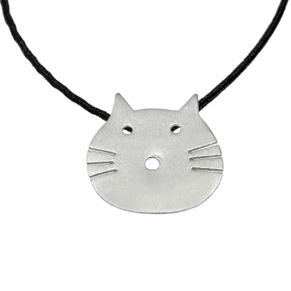925 ασημένιο γυναικείο χειροποίητο κολιέ, επιπλατινωμένο χωρίς νικέλιο, αμμοβολή ματ, με μαύρο κορδόνι & σχέδιο γάτας