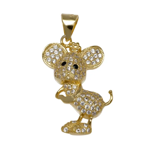 925 ασημένιο γυναικείο μενταγιόν, "ποντίκι", επιχρυσωμένο, με ζιργκόν.