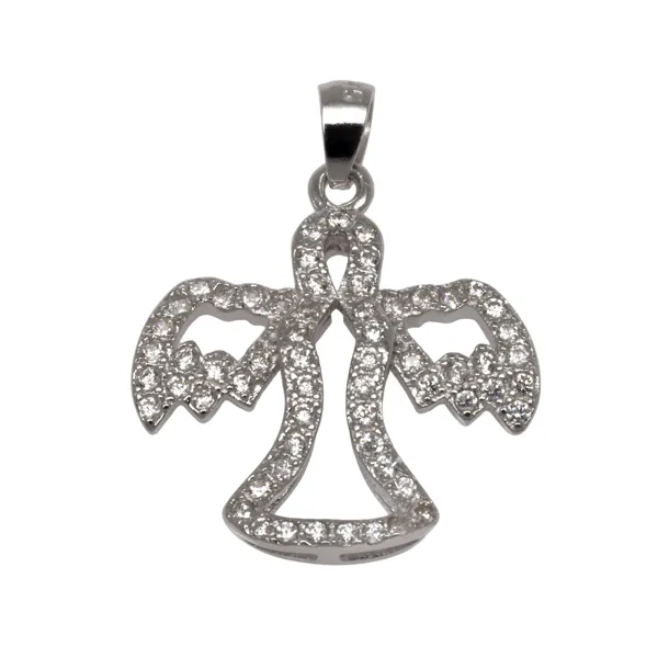 925 ασημένιο γυναικείο μενταγιόν, "άγγελος", επιπλατινωμένο, χωρίς νικέλιο με ζιργκόν.