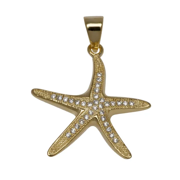 925 ασημένιο γυναικείο μενταγιόν, "αστερίας", επιχρυσωμένο, με ζιργκόν.