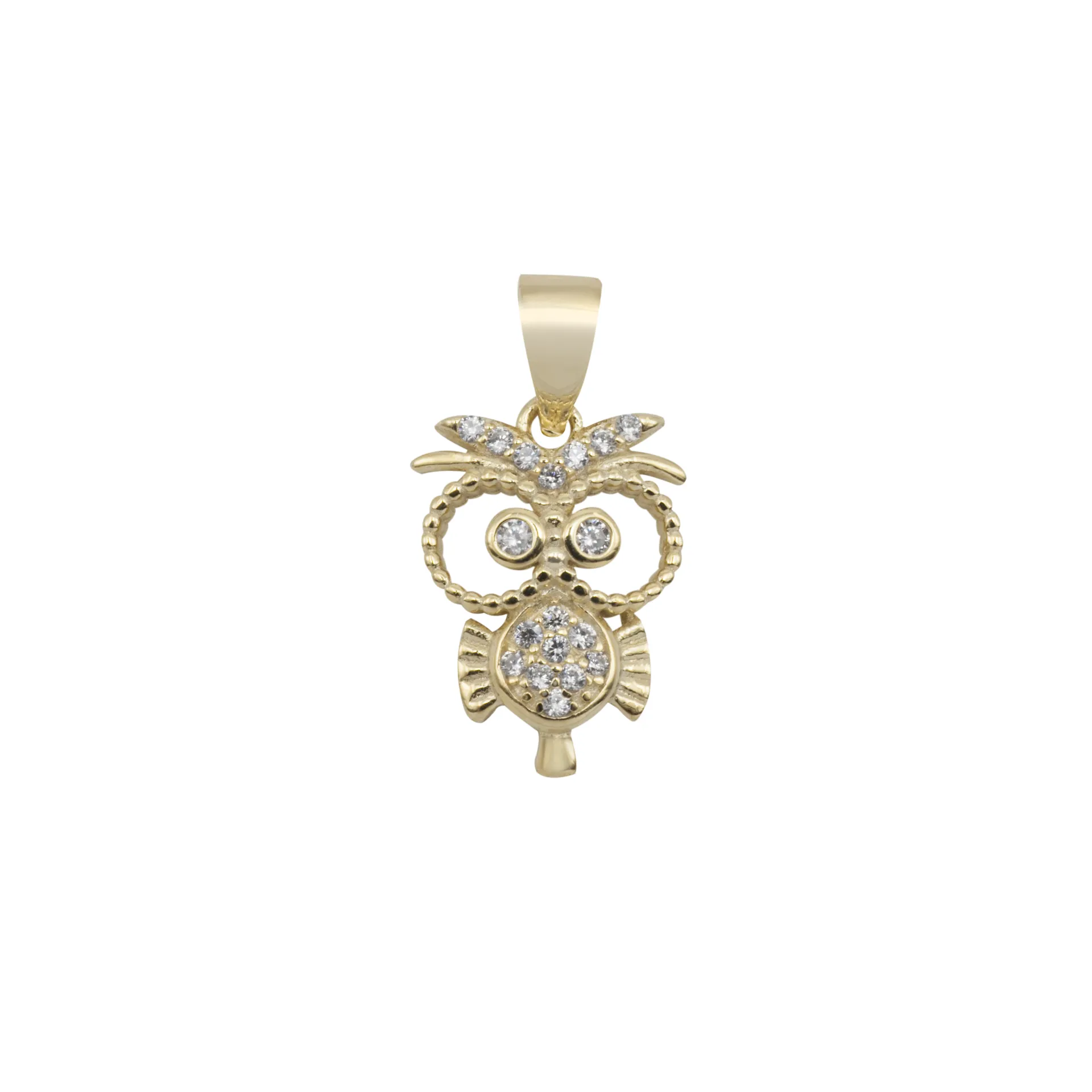 silverline, ασημένιο, γυναικείο, μενταγιόν, κουκουβάγια με ζιργκόν, κίτρινο, επιχρύσωμα,