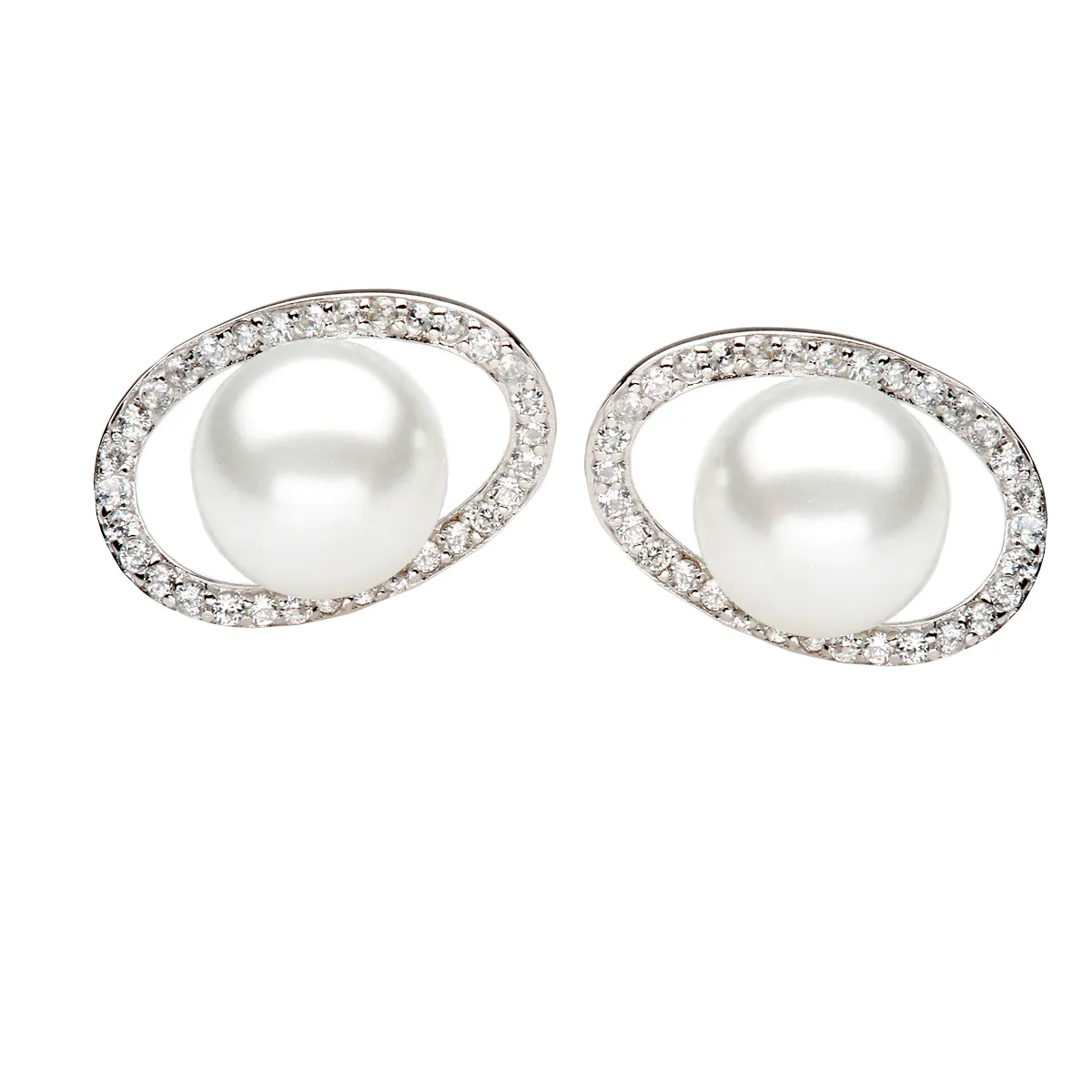 Γυναικεία σκουλαρίκια από ασήμι 925 επιπλατινωμένα με συνθετικό μαργαριτάρι και ζιργκόν. Χωρίς νικέλιο.