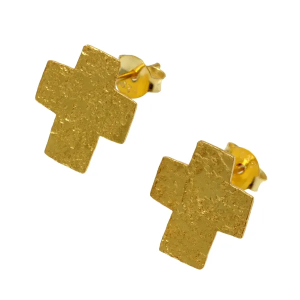 925 ασημένια γυναικεία σκουλαρίκια, επίχρυσα, χειροποίητα,ματ αμμοβολή, σε σχέδιο σταυρού