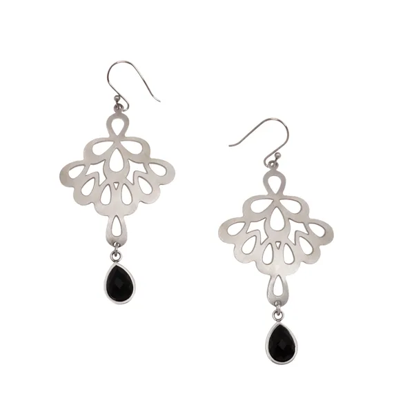 Γυναικεία σκουλαρίκια από ανοξείδωτο ατσάλι και μαύρο όνυχα