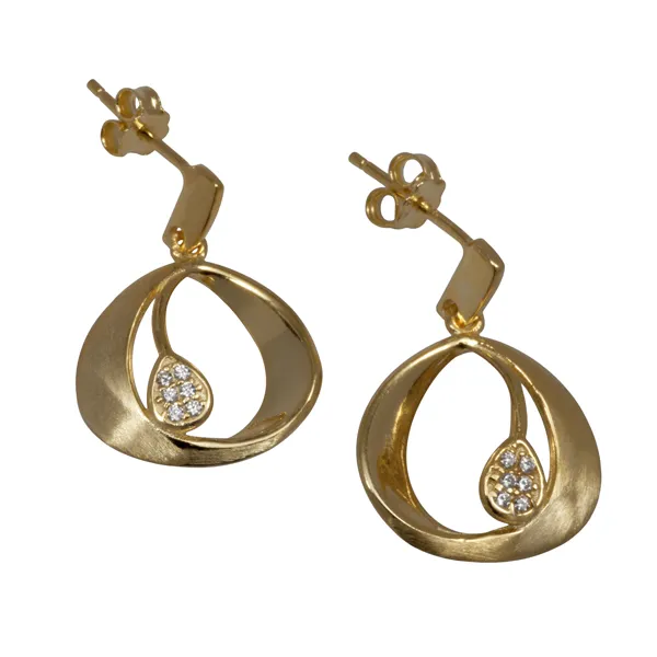925 ασημένια γυναικεία σκουλαρίκια, επιχρυσωμένα, με ζιργκόν.