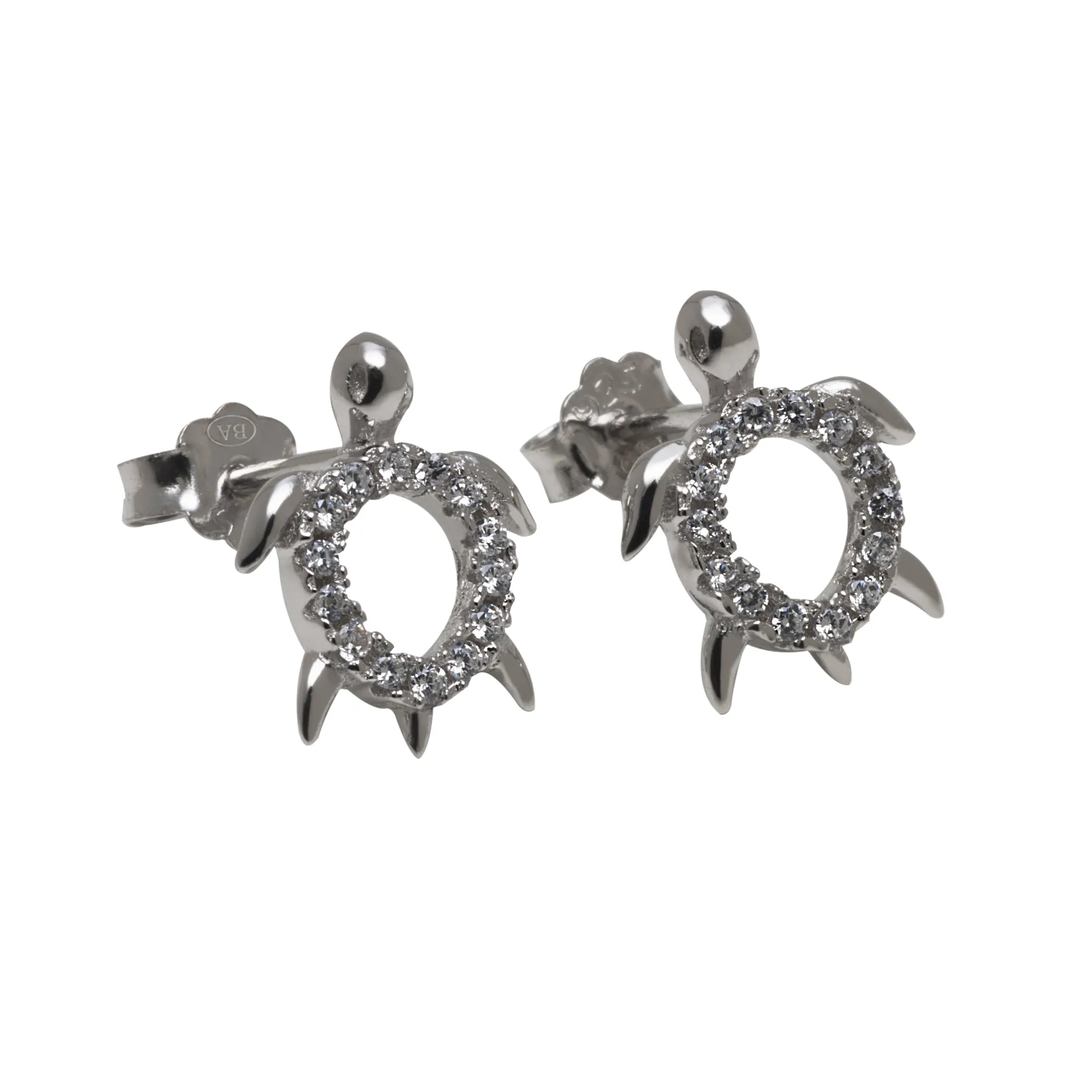 925 ασημένια γυναικεία σκουλαρίκια,χελωνα,επιπλατινωμένα, χωρίς νικέλιο με ζιργκόν.
