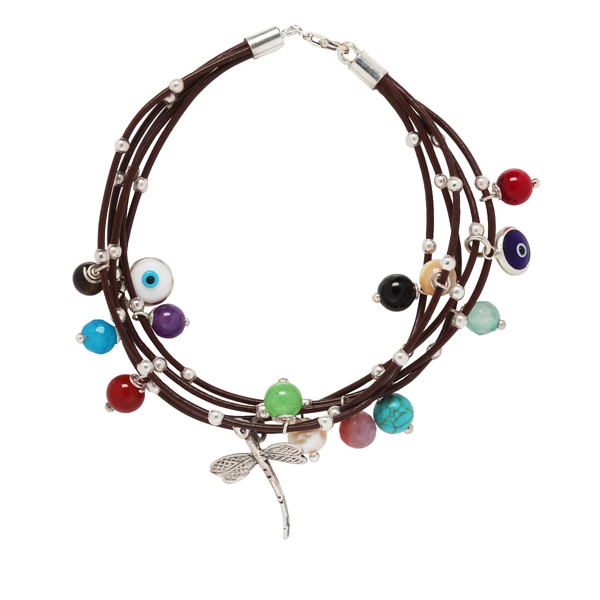 925 ασημένιο χειροποίητο γυναικείο βραχιόλι με τιρκουάζ, ματάκια, όνυχα, κοράλλι, κορνεόλι, ίασπη, αβεντουρίτη, αμέθυστο, πέρλα, λάπις, ροζ χαλαζία, αχάτης & δέρμα