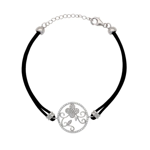 925 γυναικείο ασημένιο βραχιόλι επιπλατινωμένο χωρίς νικέλιο με ζιργκόν και βαμβακερό κορδόνι, μικροπαβέ κάρφωμα