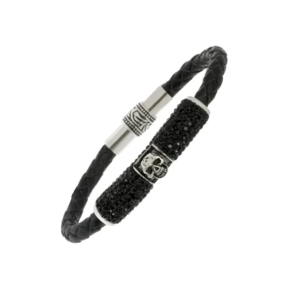 γυναικείο & ανδρικό βραχιόλι unisex από ανοξείδωτο ατσάλι, δέρμα, μαύρα ζιργκόν και σχέδιο νεκροκεφαλής