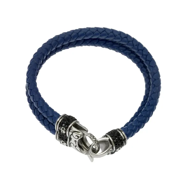 γυναικείο βραχιόλι από ανοξείδωτο ατσάλι, δέρμα, μαύρα ζιργκόν και σχέδιο νεκροκεφαλής