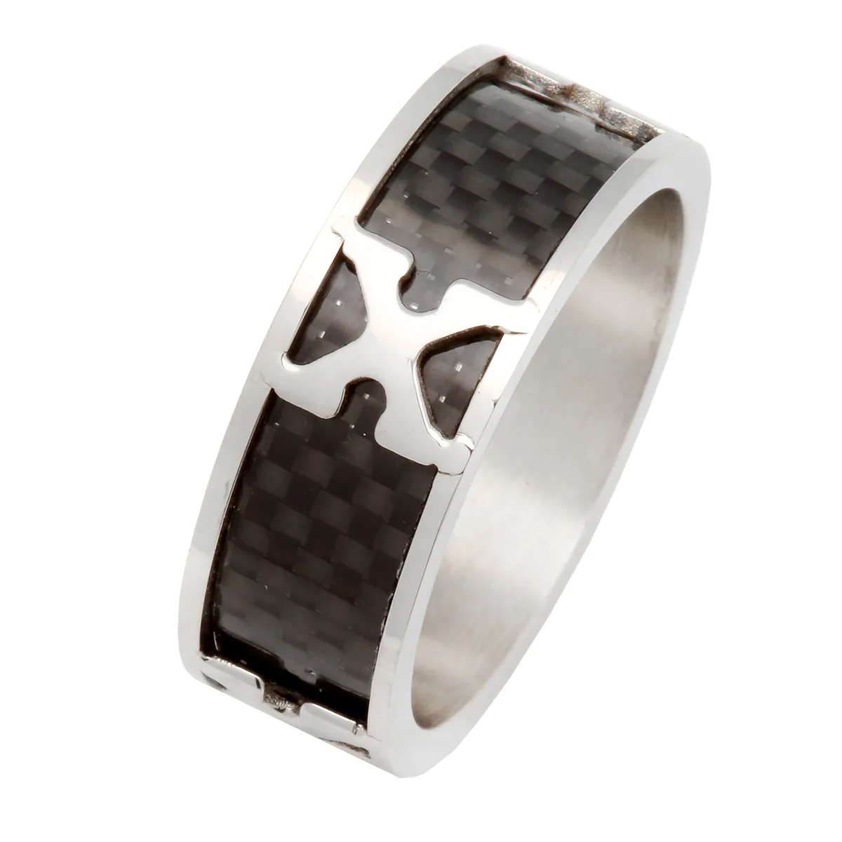Ανδρικό δαχτυλίδι από ανοξείδωτο ατσάλι με λεπτομέρειες από ανθρακόνημα.