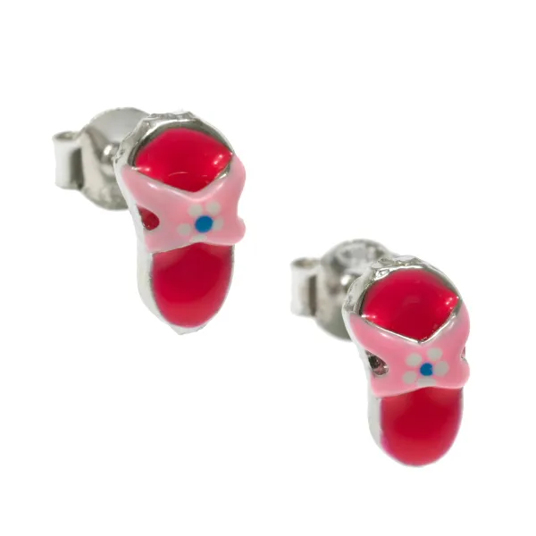 woofie, ασημένια, παιδικά, σκουλαρίκια παντόφλες για κορίτσια με σμάλτο & άσπρο επιπλατίνωμα